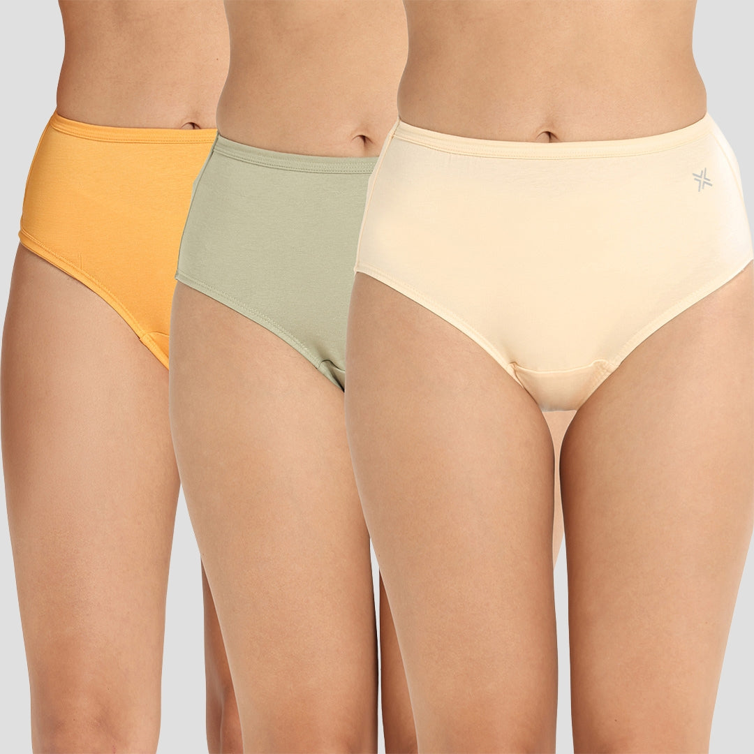 Lavos Women’s High Waist Inner Elastic Hipster – Full Back Coverage Bamboo Comfort (Pack of 3)