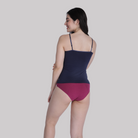 - Bra-friendly fit prevents side spillage